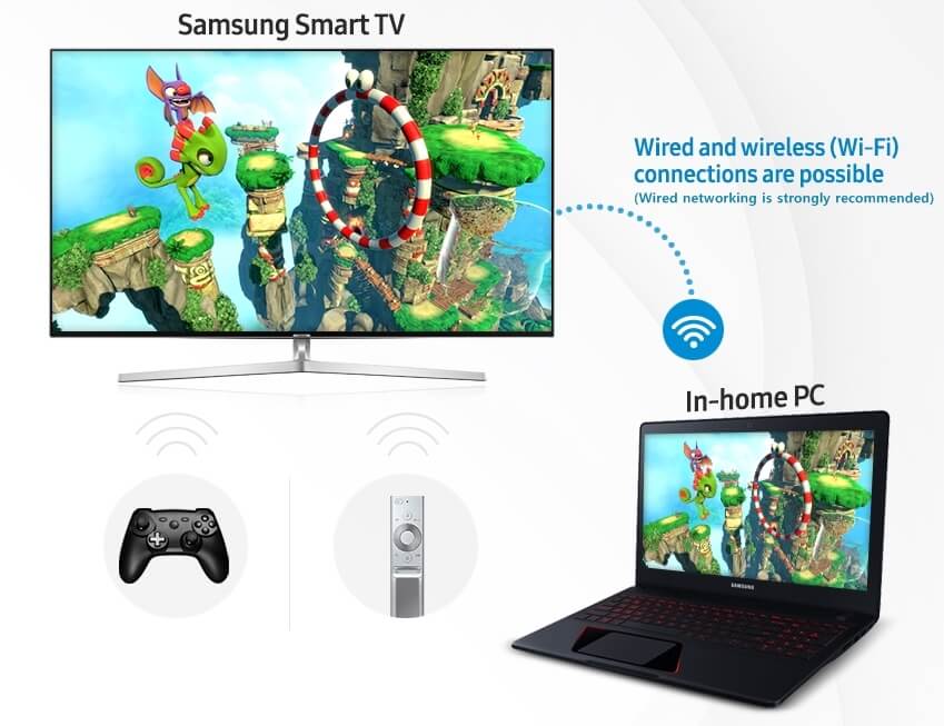 Mit der Steam Link App können PC-Gamer viele Top-Spiele in voller UHD-Qualität auf ihren kompatiblen Samsung Smart TVs genießen, ohne weitere Hardware an den Fernseher anschließen zu müssen und auch die Anschaffung eines zusätzlichen Steam Link Adapters ist nicht nötig. Es genügt, den kompatiblen Samsung Smart TV und den Spiele-PC mit demselben WLAN zu verbinden und das gewünschte Steam Link-fähige Spiel auf dem PC zu starten. Jetzt noch die Steam Link App auf dem Smart TV öffnen und es kann losgehen.